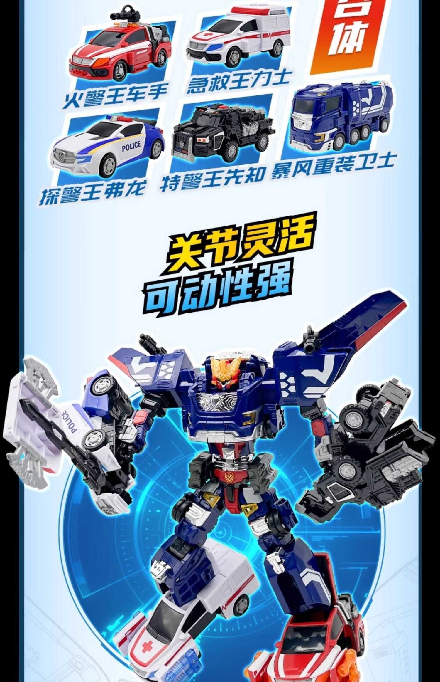 👉特警飛天X 機器人尺寸:14*17.5 cm 、特警車尺寸:17.5*7 cm